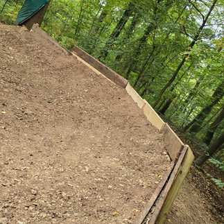 Während die meisten noch einmal richtig Spaß auf dem Bike hatten, schnappte sich ein kleines Team die Werkzeuge und machte sich am Woodpecker zu schaffen. Der Anlieger nach der großen Brücke war nach zwei Jahren reif für eine Überarbeitung – also hieß es: Schaufeln, Shapen und Verdichten. Jetzt läuft die Line wieder richtig rund!