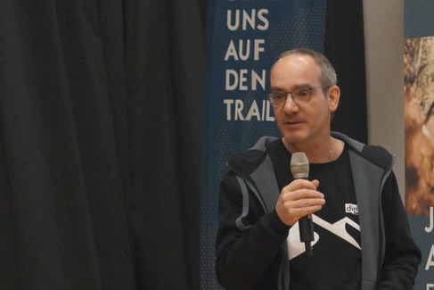 Benedikt dankt Kai Visel, dem Leiter des AK Biken & Naturschutz, für seine langjährige Arbeit für den Verein. Kai ist seit den 1990er-Jahren in Stuttgart in Sachen MTB, der Abschaffung der Zwei-Meter-Regel und Legalisierung der Trails aktiv und zieht sich nun aus privaten Gründen zurück.